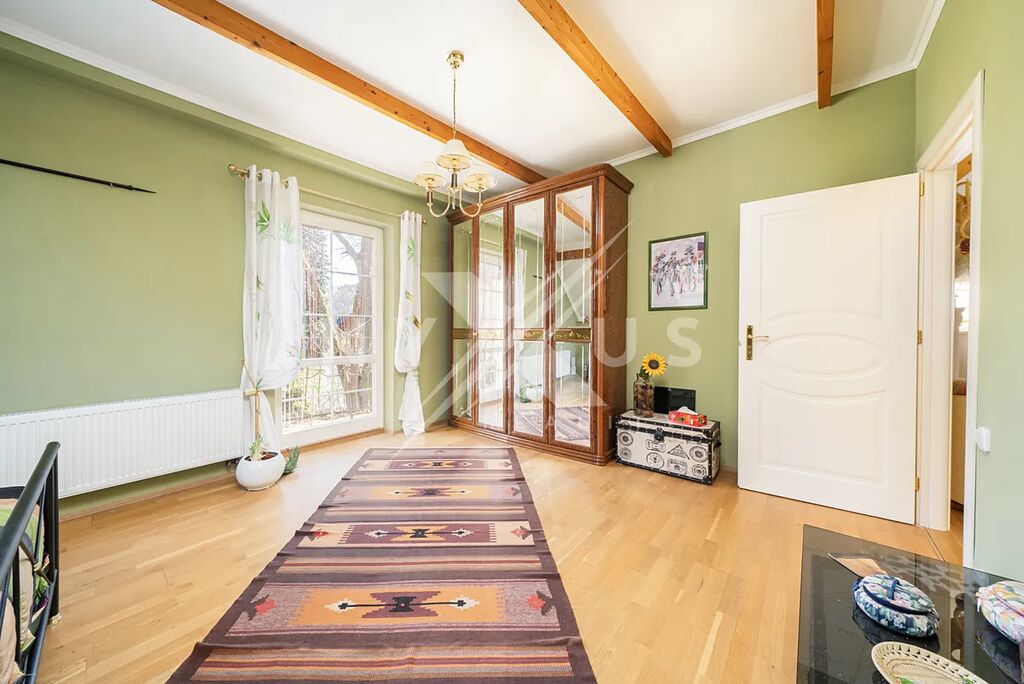 V patře o užitné ploše 82 m² se nachází prostorná hala, koupelna s vanou a dvě útulné ložnice, z nichž každá má vlastní balkon o velikosti 3 m² a kamna na dřevo.