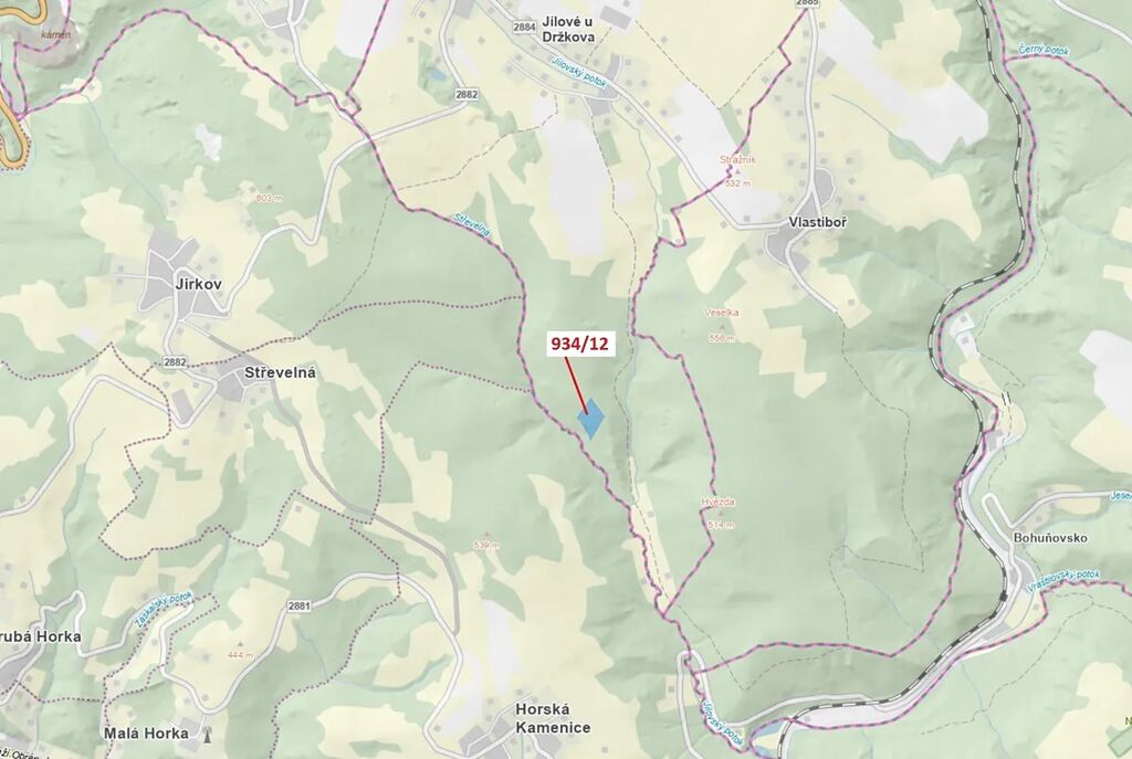 Lesní pozemek o výměře 10 166 m2, parcelní číslo 934/12, podíl 1/1, katastrální území Jílové u Držkova, obec Jílové u Držkova, obec s rozšířenou působností Železný Brod, okres Jablonec nad Nisou, Liberecký kraj. Po těžbě.