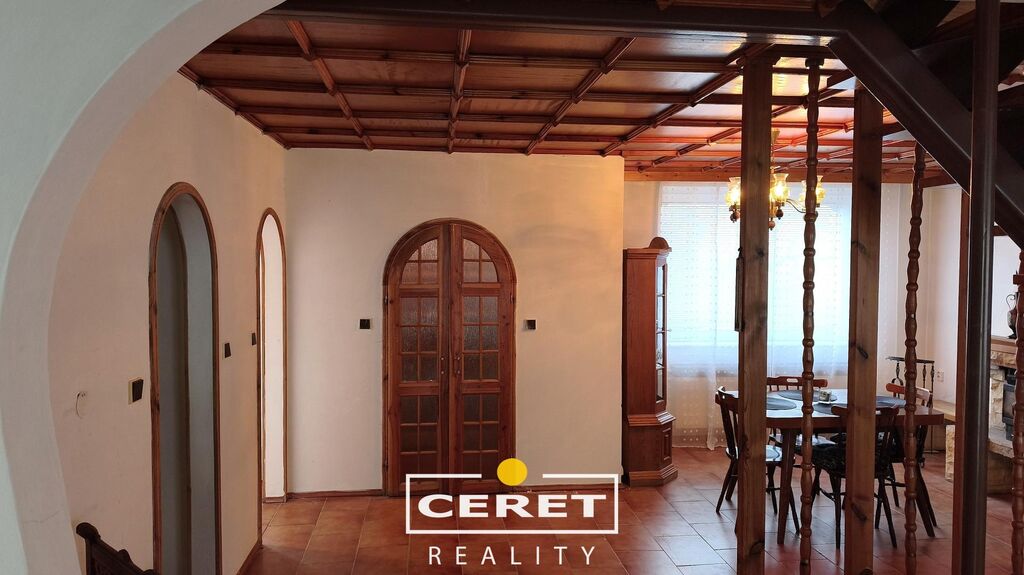 Tento objekt s velkým potenciálem, se třemi podlažími (suterén, přízemí a obytné podkroví) s dispozicí 6+1, má celkovou užitnou plochu 260 m2 a zastavěnou plochou 100 m2. Pozemek nabízí celkem 919 m2.