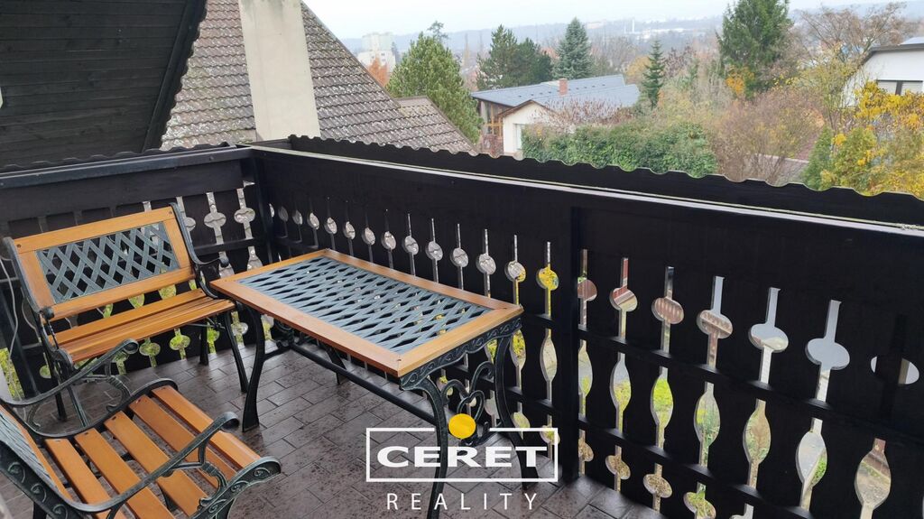 Disponuje posezením pod pergolami, terasami (z toho jedna uzavřená a vytápěná) a na balkonech s nádherným výhledem. Dále garáží s dílnou a sklepem v suterénu, parkovacím místem, skleníkem a zahradou se samostatnou chatkou.