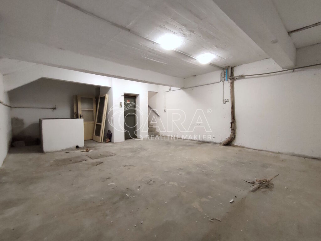 V principu jsou prostory rozděleny na dvě části. První má výměru cca 114 m2 a využijete ji jako obchodní, jelikož je umístěna v přízemí se dvěma vstupy z ulice a zároveň je vytápěná ústředním topením. Druhou část pak můžete využít jako sklad, ta je umístěna v suterénu a má výměru cca 44 m2. V zázemí je základní kuchyňka a toaleta.