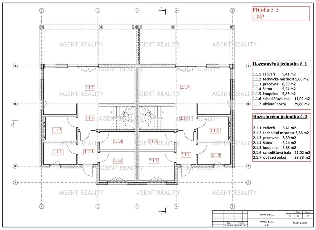 AGENT Reality nabízí k prodeji novostavbu rodinného domu o dvou jednotkách 186/60AA + 186/60BB, z toho každá o dispozici 5+kk na rozlehlém pozemku o celkové rozloze 1 228 m2 v lokalitě Slaný - Dolín.