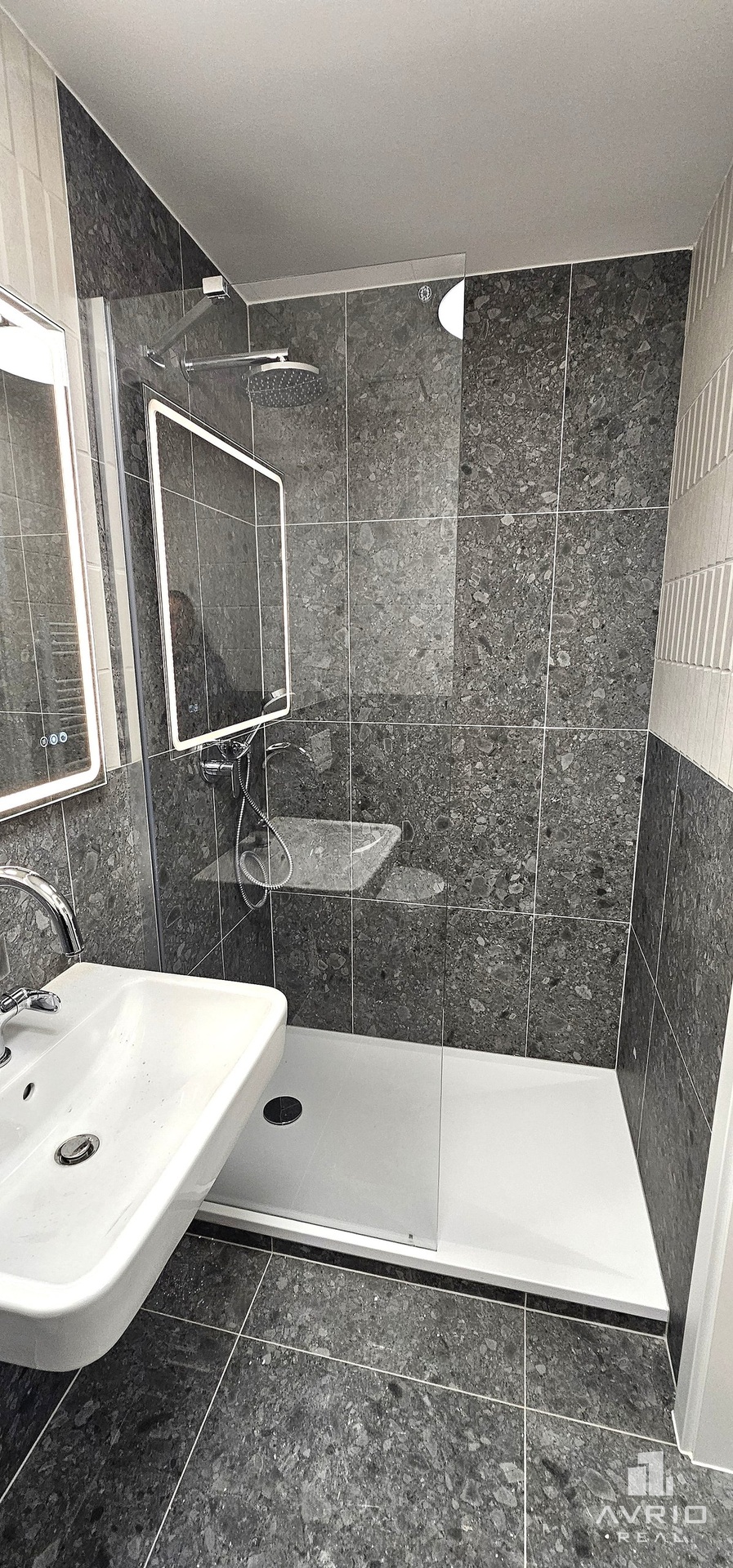 - designová kuchyňská linka se všemi vestavěnými spotřebiči (lednice s mrazákem, myčka, pračka, trouba, varná deska, mikrovlnka)
