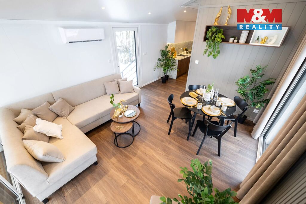 Na prodej nabízíme moderní mobilní dům na klíč, ideální pro ty, kteří touží po klidném dostupném bydlení nebo po pohodovém místě k odpočinku a rekreaci. Tento jednopodlažní dům smíšené konstrukce (ocel, dřevo, plasty, hliník) je vybaven nábytkem a spotřebiči, takže po předání je připraven k okamžitému nastěhování. Užitná plocha činí 43 m². Dům lze umístit na jakýkoliv pozemek určený k zastavění do 6 měsíců od získání stavebního povolení. Předmětem prodeje je samotný mobilní dům bez pozemku. Cena zahrnuje převoz na místo, usazení domu je účtováno dle složitosti případu. Cena je uvedena bez DPH, které se odvíjí od komplexnosti obchodu. Nepropásněte tuto jedinečnou příležitost k pořízení domu a starosti se získáním stavebního povolení na Váš pozemek nechte na projektantovi. Se zajištěním výhodného financování pomůže partner MM finance. Domluvte si prohlídku v showroomu v Rychnově nad Kněžnou ještě dnes.