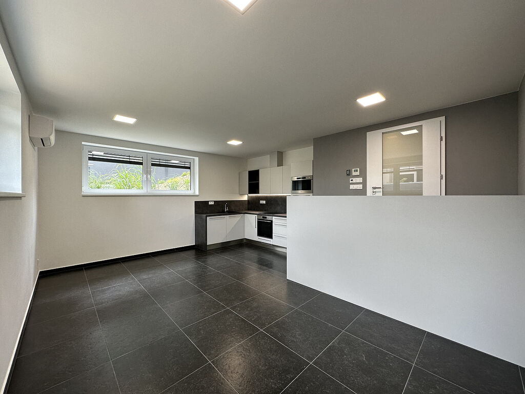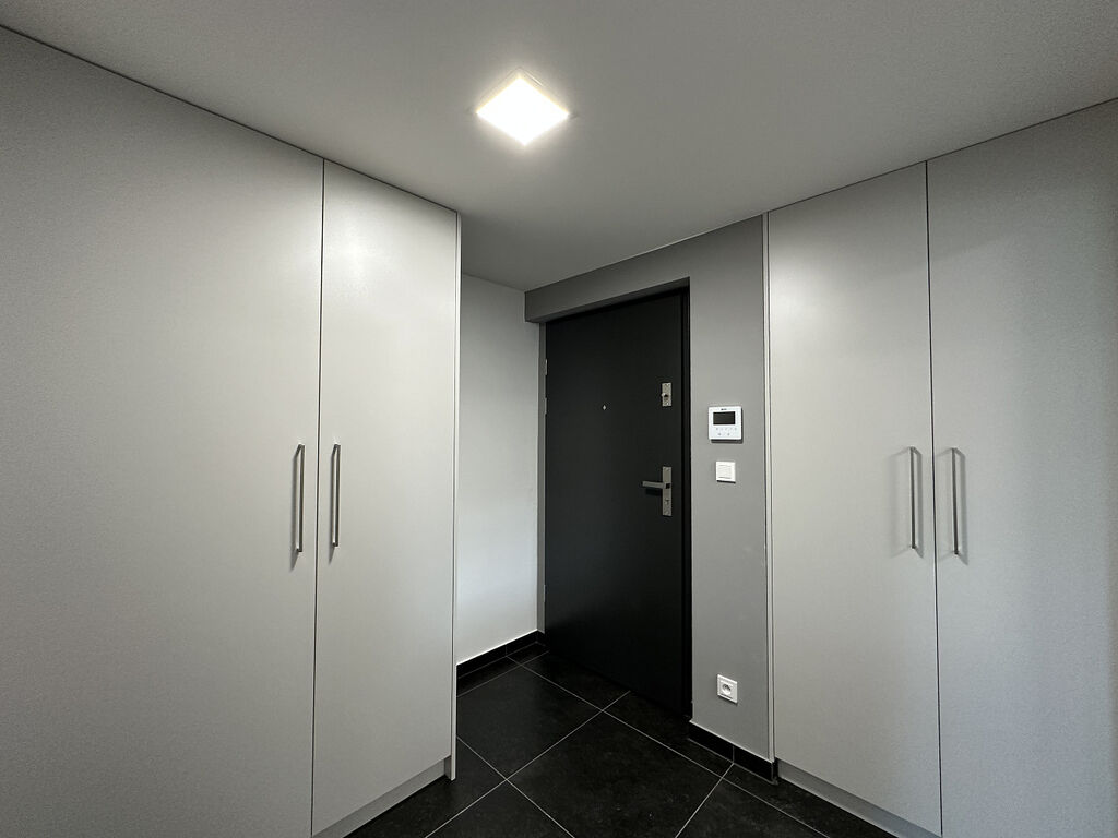 This modern studio is partially furnished - kitchen with appliances, built-in wardrobes, complete lighting equipment, air conditioning, outdoor electric blinds, window nets against insects, home videophone, central water treatment plant (automatic softener), tiled floor. The apartment includes 1 parking space in front of the house on a fenced plot with the possibility of recharging an electric car and a storage room.