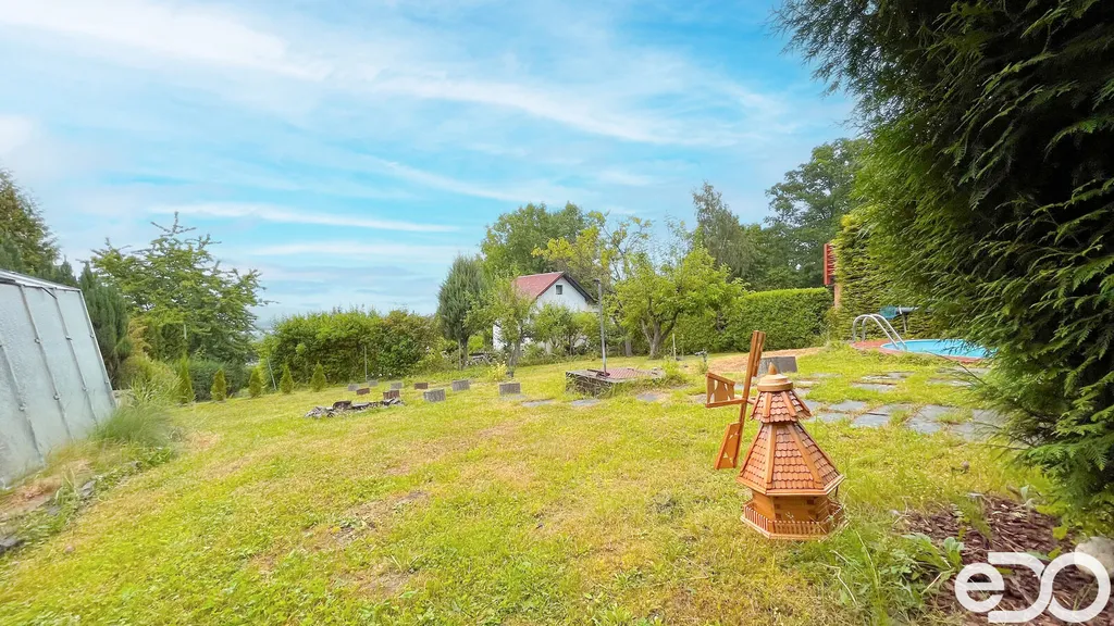 Na zahradě dále nalezneme zapuštěný bazén, skleník a dřevník. Pozemek je ohraničen živým plotem a pletivem. Nabízí mnoho prostoru pro zahradničení, grilování, večerní opékání buřtů. Za horní brankou je již pouze les, kam můžete chodit na procházky se psem, nebo třeba na houby.