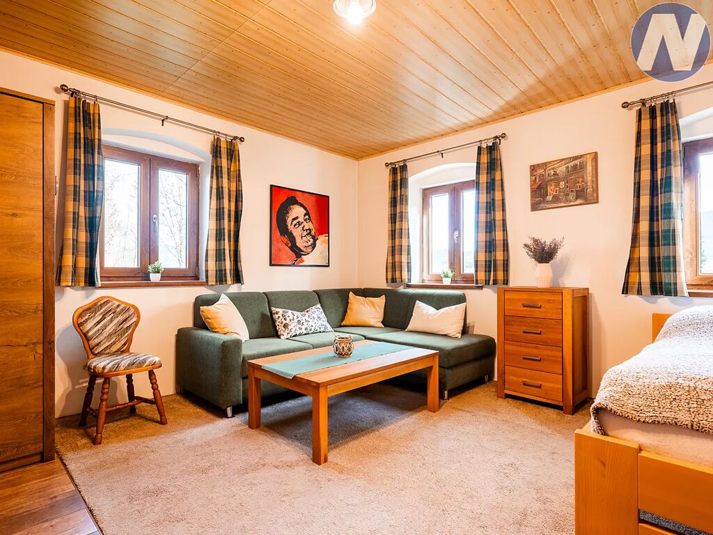 Nemovitost prošla zdařilou rekonstrukcí, včetně instalace zcela nové střechy. Podlahová plocha činí 70,5 m² a dispozice 3+1 nabízí dostatek prostoru pro rekreaci i trvalé užívání. K vybavení patří dvě krbová kamna, klimatizace, elektrický bojler a rovněž možnost vybudování podkrovního obytného patra. Interiér je čistý, udržovaný a připravený k okamžitému nastěhování. Díky technickému stavu a atraktivní poloze má nemovitost výborný investiční potenciál – je vhodná pro krátkodobé rekreační pronájmy, o které je v této části Šumavy dlouhodobě vysoký zájem.