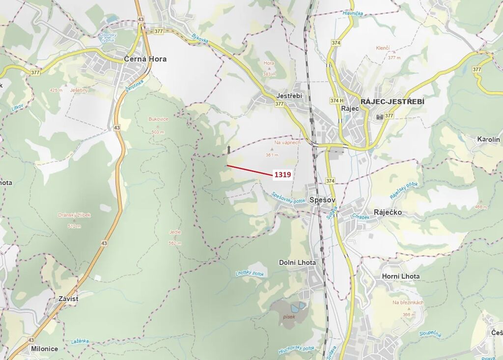 Lesní pozemek o výměře 316 m2, parcelní číslo 1319, podíl 1/1, katastrální území Spešov, obec Spešov, obec s rozšířenou působností Blansko, okres Blansko, Jihomoravský kraj.