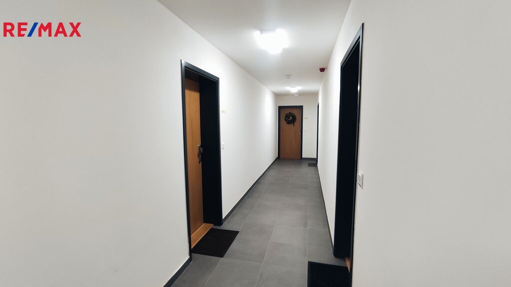Byt je zcela nový a nebyl tedy doposud nikým užíván. Je vybaven kuchyňskou linkou s el. troubou, digestoří, indukční varnou deskou, sprchovým koutem, umyvadlem, prostorem pro pračku a sušičku a WC. Dále byt disponuje dvěma neprůchozími pokoji a prostornou chodbou. Vytápění a ohřev vody je centrální dálkový a energetická náročnost budovy je B, úsporná. Elektřina se převádí na nájemníky.