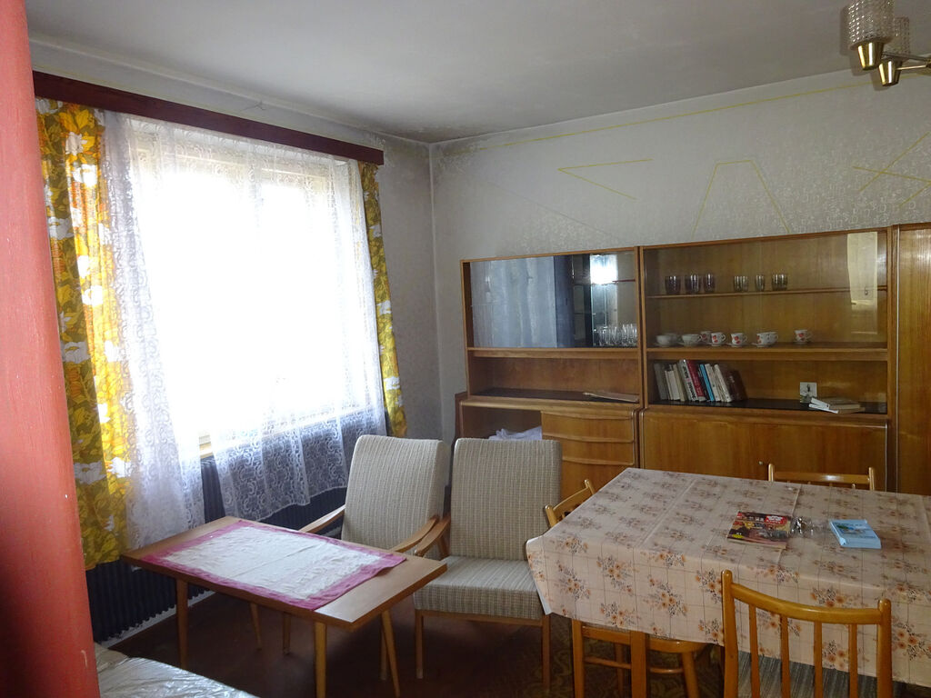 Rodinný dům (z roku 1974) postavený na místě původní zemědělské usedlosti; v suterénu kotelna, uhelna, sklepy; v přízemí chodba, kuchyň, tři pokoje, spíž, koupelna, WC; podkroví domu je nedokončené (chodba, kuchyň, dva pokoje, šatna, komora, sociální zařízení), chybí zde zařizovací předměty v kuchyni i na soc. zařízení, včetně obkladů stěn a dveří. Dům je připojený na elektrickou energii, pitnou vodu a kanalizaci. Topení ústřední na tuhá paliva. Bylo by vhodné provést modernizaci přízemí domu a dokončit podkroví domu, včetně výměny oken v celém domě. Před domem je předzahrádka se studnou na užitkovou vodu, na dvorku jsou vedlejší stavby (bývalé chlévky a sklad, u konce své životnosti) a stodola se zemním sklepem. Za stodolou je zahrada s ovocnými stromy a louka. Zastavěná plocha domu se stavbami a dvorkem celkem o výměře 1033 m², ostatní pozemky navazující na dům o výměře 4155 m². Nemovitosti jsou ideální volbou pro ty, kteří hledají místo pro klidné rodinné bydlení uprostřed přírody, s možností vlastních úprav a modernizace. Nechte se okouzlit příležitostí vytvořit si vlastní domov na tichém místě v srdci Vysočiny, vzdáleném pouze 8 km od Velkého Meziříčí, kde je kompletní občanská vybavenost, včetně napojení na D1. Financování hypotečním úvěrem možné – s vyřízením rádi pomůžeme. PENB nebyl doložen, klasifikační třída "G".