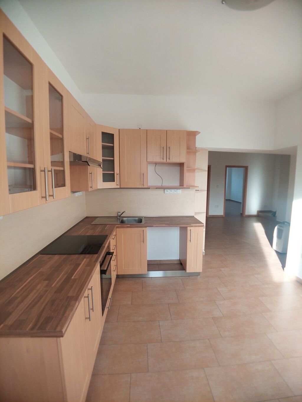 Nabízíme k pronájmu kompletně zrekonstruovaný, prostorný byt 2+1, 73 m2 přímo v centru Tábora. Byt se nachází ve 3. patře (bez výtahu) činžovního domu. Dispozice bytu je tvořena prostornou chodbou, velkou otevřenou kuchyní a dvěma velkými pokoji se samostatným vstupem z chodby. Z chodby lze vstoupit do technické místností s umyvadlem, kde jsou připraveny rozvody pro pračku a sušičku. Dalším vstupem z prostorné chodby se vchází do koupelny, kde se nachází sprchový kout, umyvadlová skříňka s velkým zrcadlem a závěsným WC. V celém bytě jsou provedeny nové rozvody elektřiny, vody, na podlaze je ve všech místnostech položena dlažba s podlahovým vytápěním, zateplené a snížené stropy, nové štuky, dále jsou zabudovány ve všech místnostech nové dveře a plastová okna s garnýžemi. V kuchyní se nachází nová kuchyňská linka realizovaná na zakázku, včetně nových vestavěných spotřebičů (elektrická trouba, sklokeramická deska, digestoř, mikrovlnná trouba). V ceně nájmu nejsou zahrnuty poplatky za energie (5.000,- Kč ). Majitel požaduje kauci ve výši 27.000 Kč. Provize RK. Pro více informací volejte makléři.