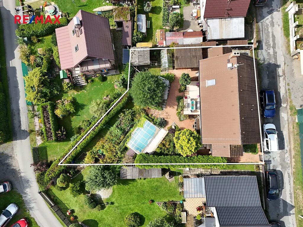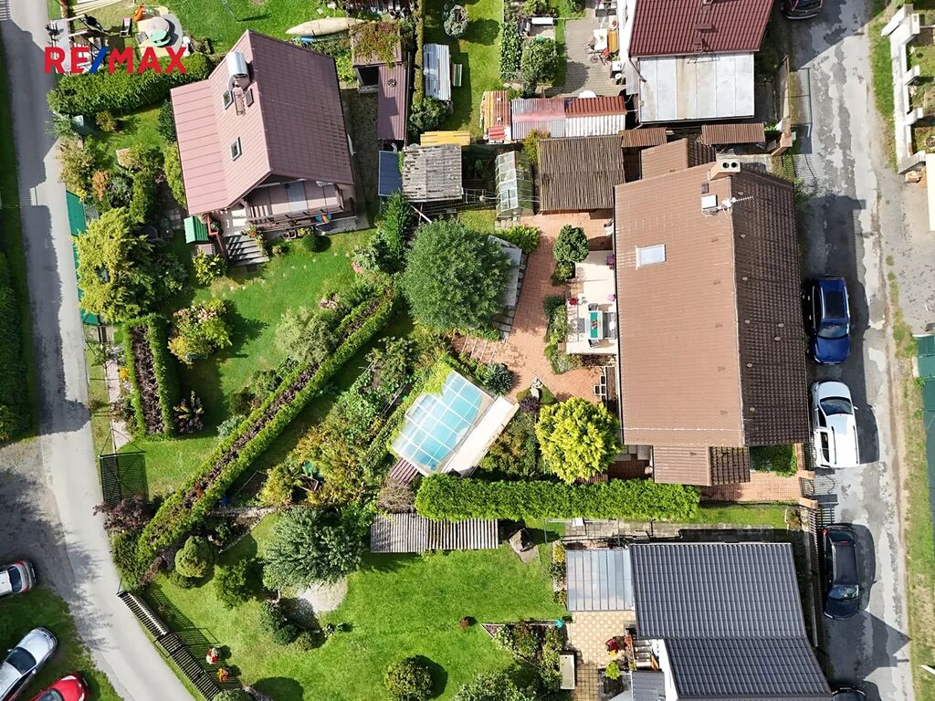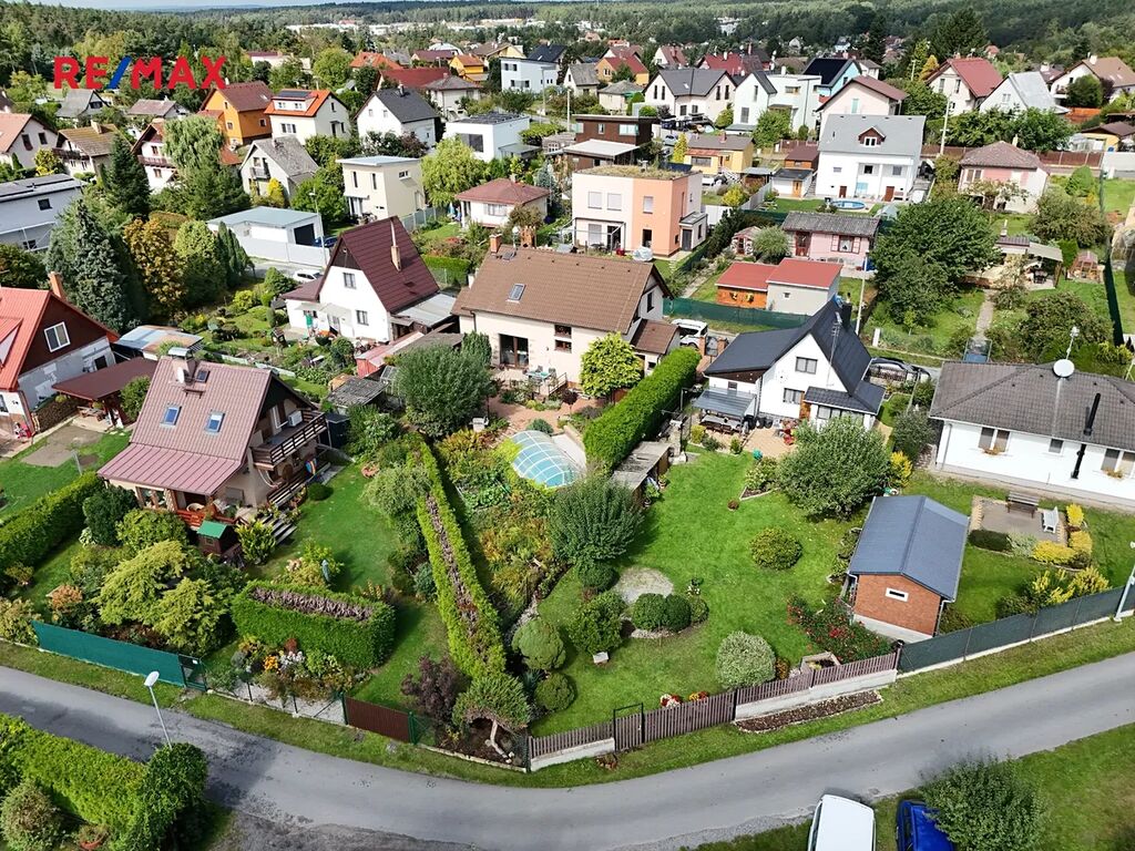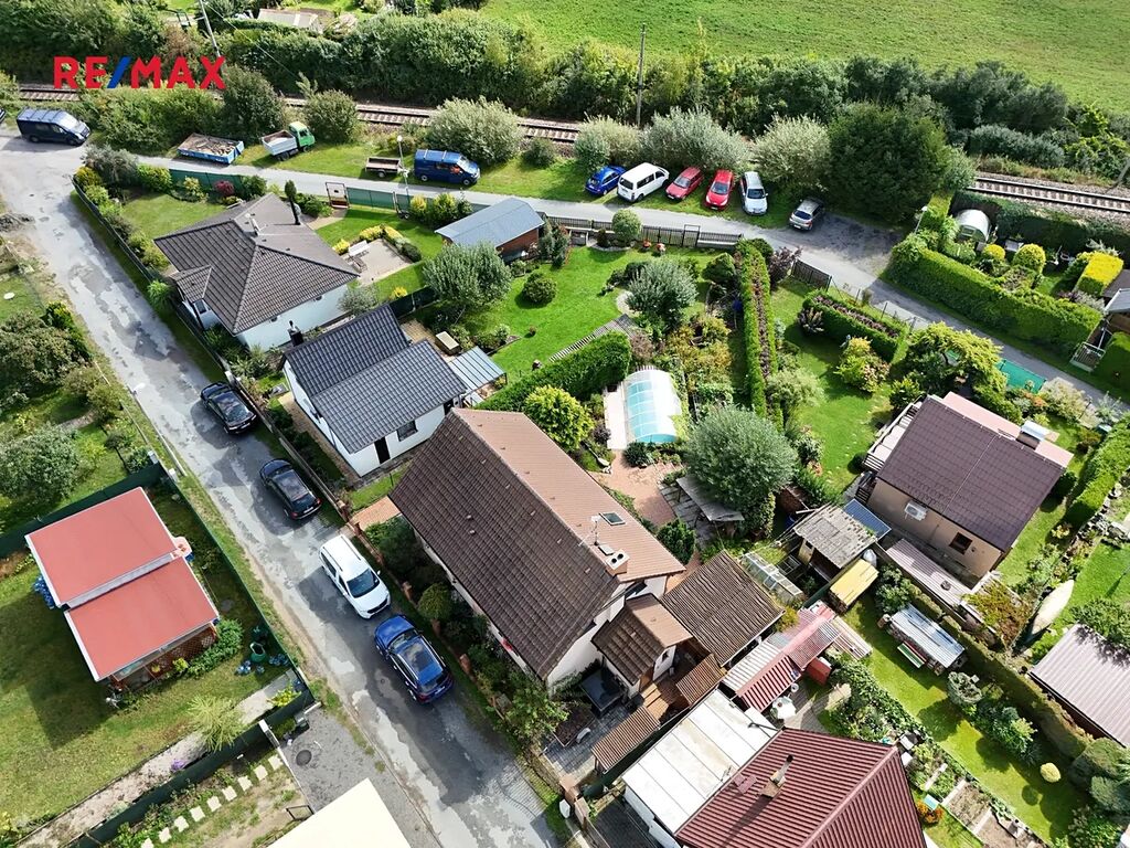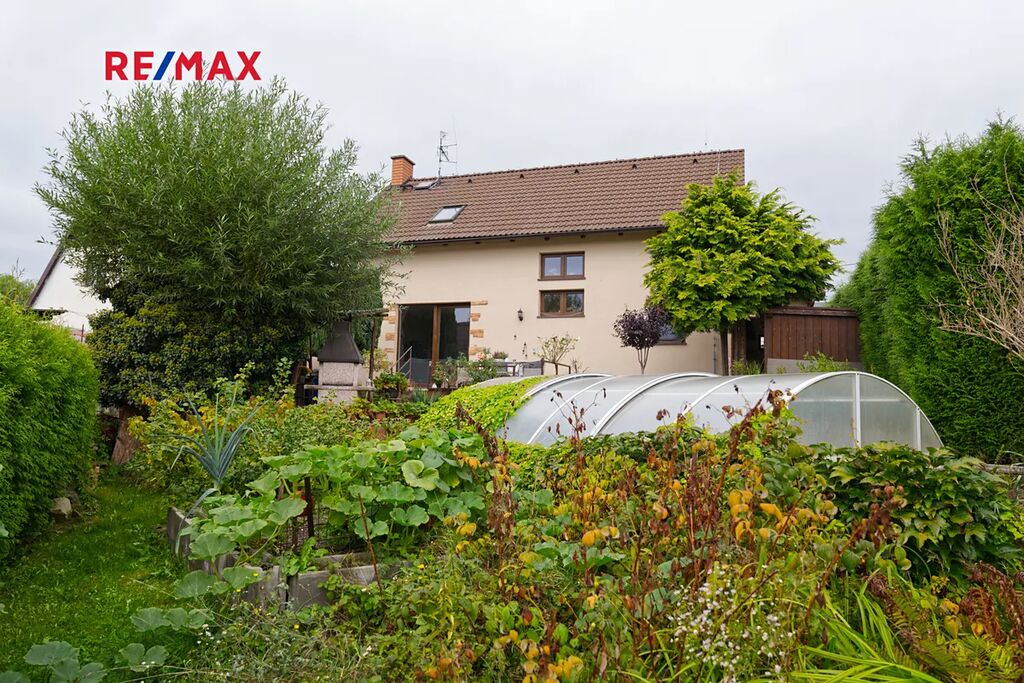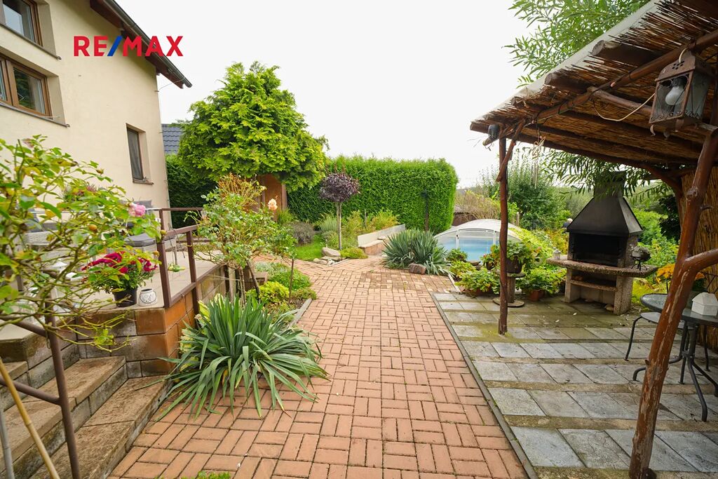 Součástí pozemku je zahrada o výměře 360 m² s bazénem 5 × 3 m s protiproudem, skleníkem a dvěma přístřešky vhodnými na nářadí či zahradní techniku.