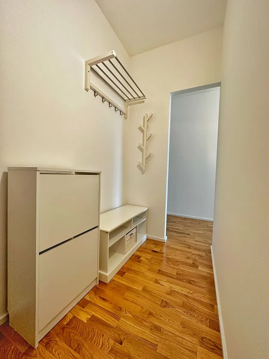 Součástí bytu je praktická šatna a kuchyň vybavená kvalitními spotřebiči, takže je vše připravené k okamžitému užívání. Z balkonu je příjemný výhled na „syslí louku“, který dodává bytu klidnou a velmi příjemnou atmosféru.
