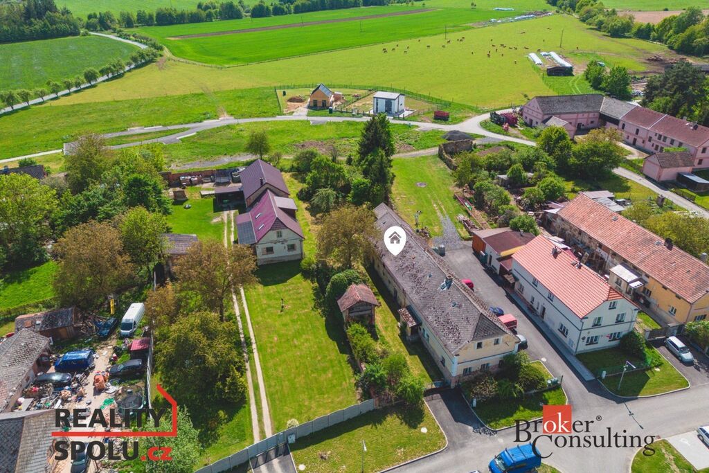 Dům je napojen na veřejnou kanalizaci a vodovod, zároveň má i vlastní studnu, takže základní infrastruktura je připravená. Ostatní je čisté plátno pro vaše představy.