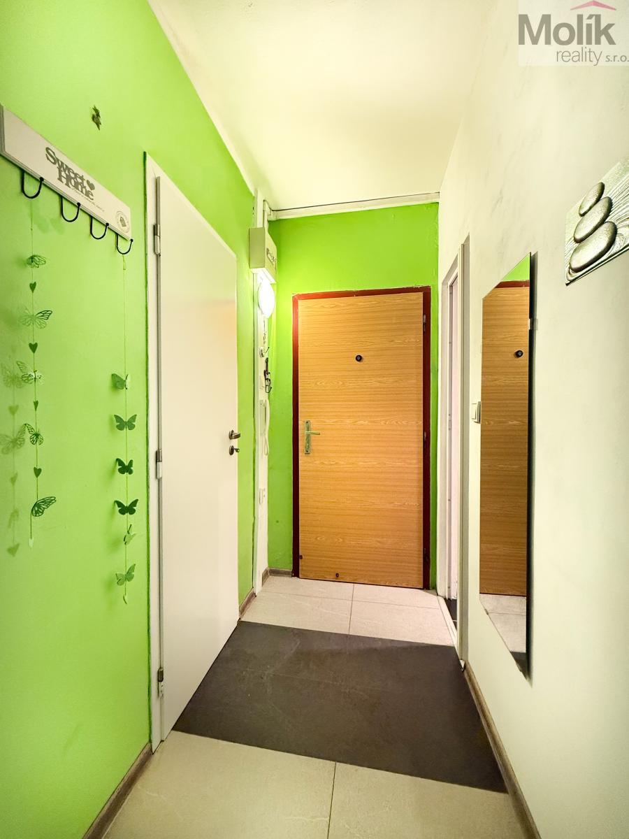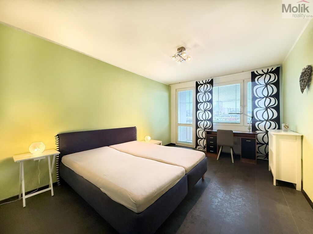 Byt je v pěkném, zrekonstruovaném stavu - nová kuchyňská linka s vestavěnými elektrospotřebiči, hezká koupelna s vanou, samostatné WC, podlahová krytina - marmoleum. Byt je vybaven nábytkem a elektrospotřebiči - lednice, pračka, sedací souprava, konferenční stolek, komoda, 2x jídelní stůl + židle, postel, noční stolky, psací stůl + židle, 2x komoda, šatní skříň.