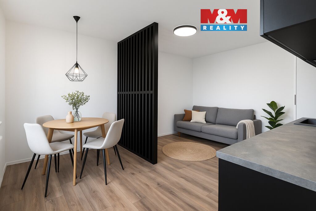 Dominantou bytu je prostorný pokoj, ve kterém je umístěna kuchyňská linka se spotřebiči Gorenje, jídelní kout a obývací část, což tvoří příjemné a funkční srdce celého bytu. Dále je zde ložnice a další samostatný pokoj vhodný například jako dětský pokoj nebo pracovna.