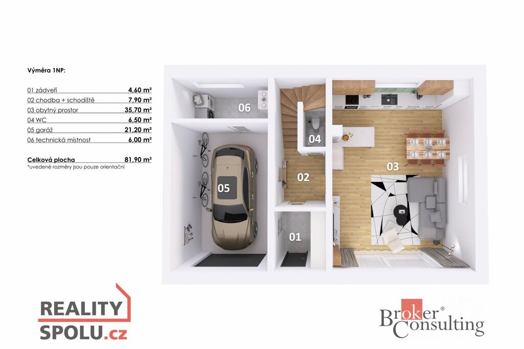 Moderní dispozice 5+kk ve dvou podlažích