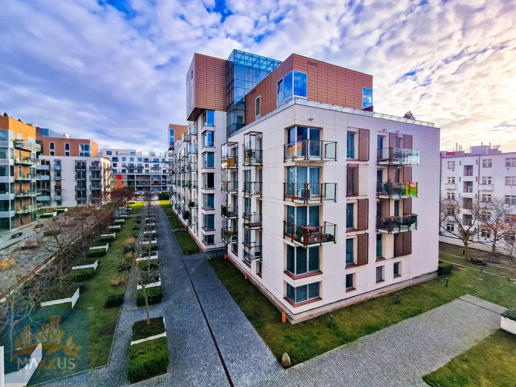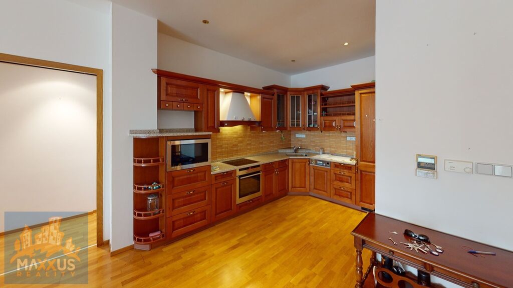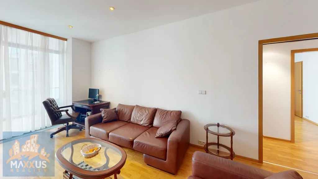 Byt se nabízí vybavený nábytkem (viz. fotogalerie). Jedná se dispozičně o 3+kk s užitnou plochou 95,66 m2 a lodžií 21 m2. K bytu rovněž patří sklepní kóje a dvě parkovací garážová stání v suterénu domu, která jsou již zahrnuty v ceně nájemného.