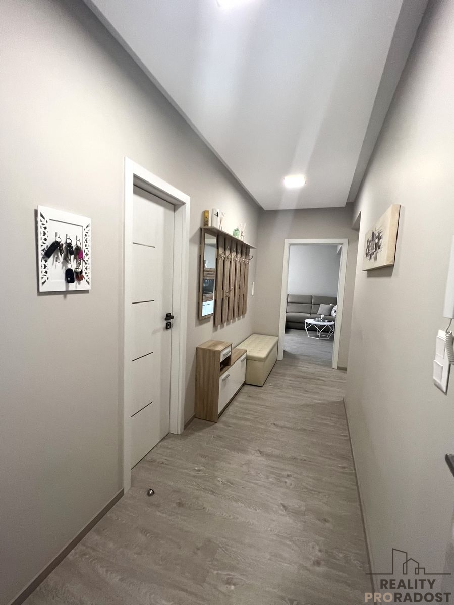 V celém bytě jsou kompletně vyměněné vinylové podlahy, v koupelně a na toaletě je položená dlažba. Pokoje a chodba mají noční svícení s návěsným stropem. Dveře firmy Sapeli – moderní bezfalcové s hladkou linií dveří a zárubní, ze kterých nic nevyčnívá.