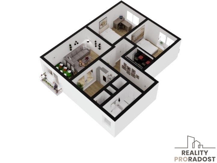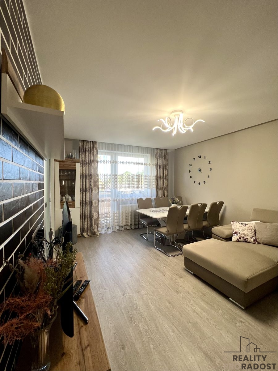 Prodej bytu přibližně 86m², byt 3+1 + 2 balkony + garážové stání + sklep + kóje. Byt je po kompletní rekonstrukci včetně rozvodů elektřiny, topení a nových topných těles. Topení je zajištěno centrálně pomocí plynu. V bytě jsou kompletně vyměněny rozvody vody a topení. Dostatek úložného prostoru poskytuje šatna. Kuchyně je nově vyrobená truhlářem a vybavená vestavěnými spotřebiči s dostatkem úložného prostoru.