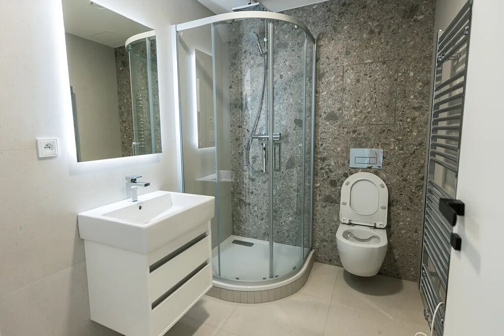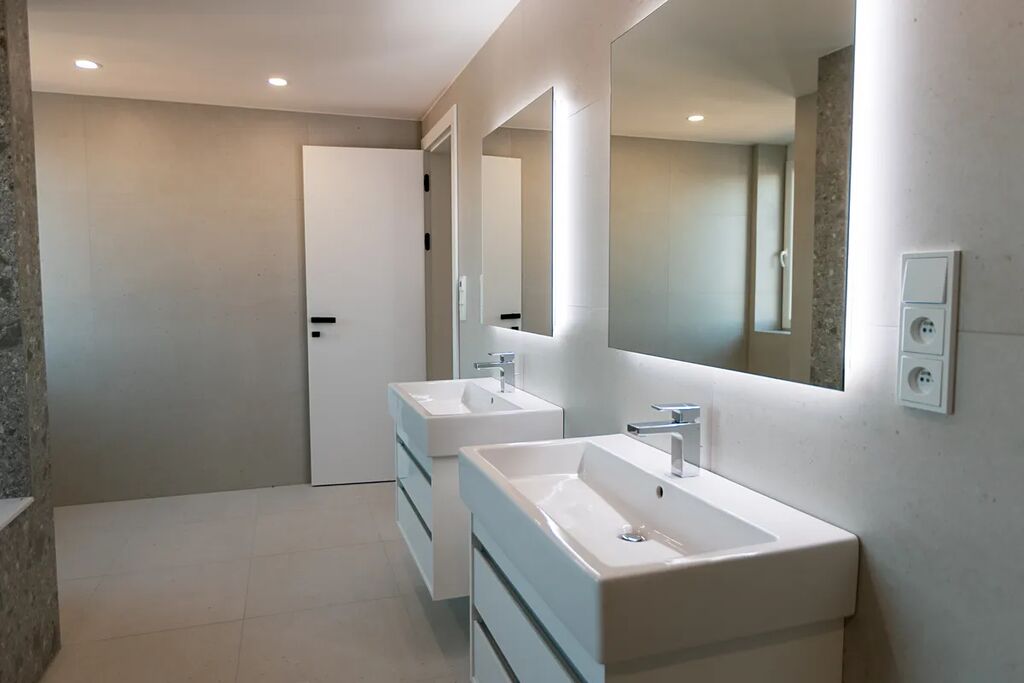 - Nadstandardní koupelny s velkoformátovými obklady