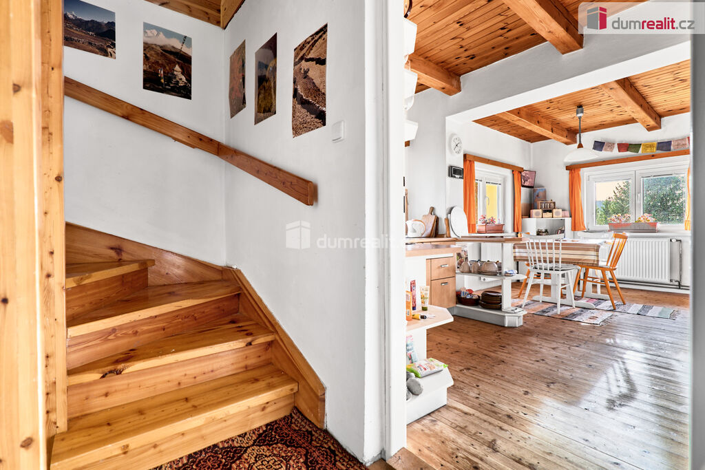 prodej rekonstruované zateplené chalupy v Krušných horách, v těsné blízkosti obce Nové Hamry v nádherné lokalitě s výhledem do údolí. Chalupa stojí na konci příjezdové cesty a je na polosamotě obklopena lesy a přírodou. V přízemí objektu je obývací pokoj s kuchyňským koutem a krbovými kamny, koupelna s WC a technická místnost, ve které je umístěn plynový kotel, kterým je dům vytápěn. V podkroví jsou dva samostatné pokoje, z nichž jeden má vstup na balkon. V chodbě podkroví je vestavěná skříň. Objekt je napojen na el. energii (rozvody v mědi) a plyn. Vodu zajišťuje vlastní vrt a odpad je sveden do septiku s trativodem. V okolí jsou lesy s mnoha turistickými, cyklistickými a běžeckými trasami a lyžařskými středisky. Dům je vhodný i pro trvalé bydlení. Cena zahrnuje i veškeré vnitřní vybavení (viz foto). Tuto nemovitost lze hradit hypotečním úvěrem, který Vám rádi pomůžeme vyřídit v našem hypotečním centru. Ev. číslo: 653094.