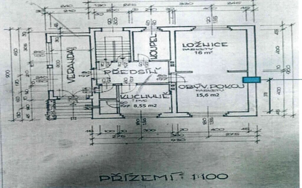 1. patro: obývací pokoj, ložnice, kuchyň se spižírnou, koupelna s vanou, samostatné wc, chodba, vstupní veranda.