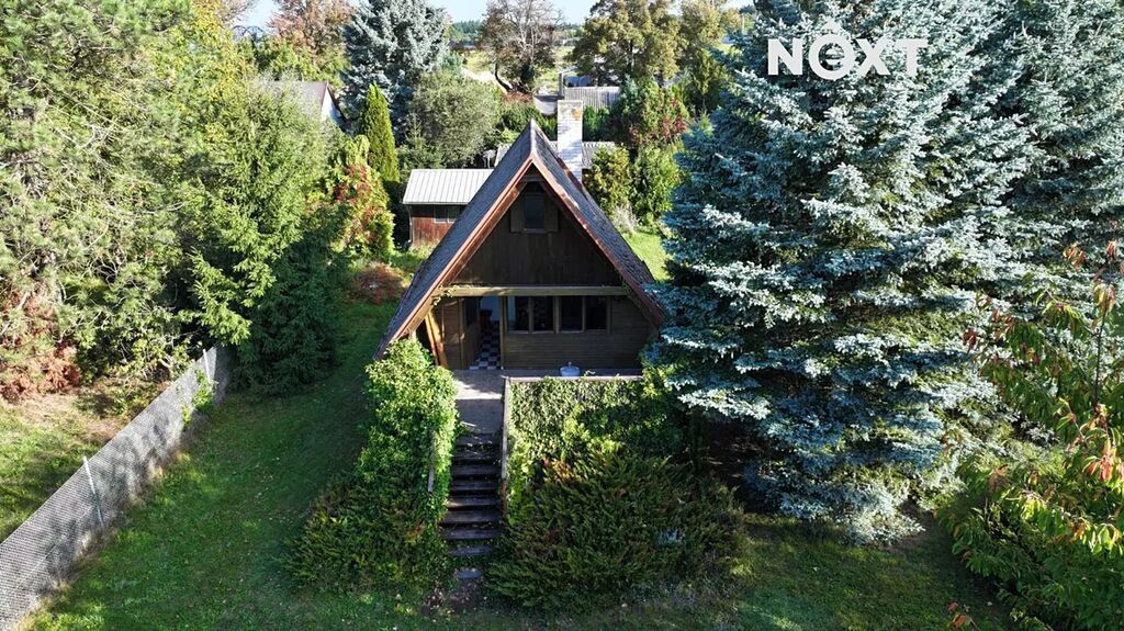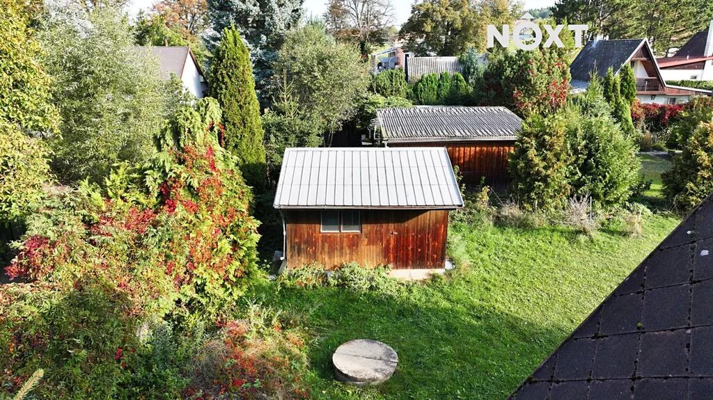 Součástí pozemku je dřevěná rekreační chata se dvěma nadzemními podlažími a podsklepením.