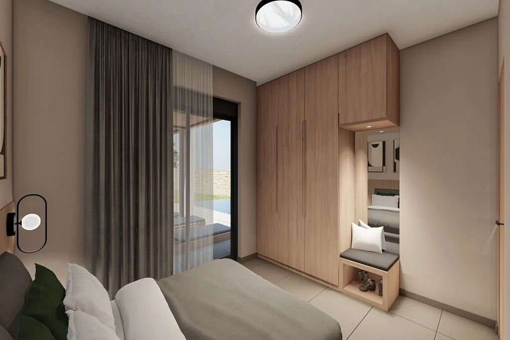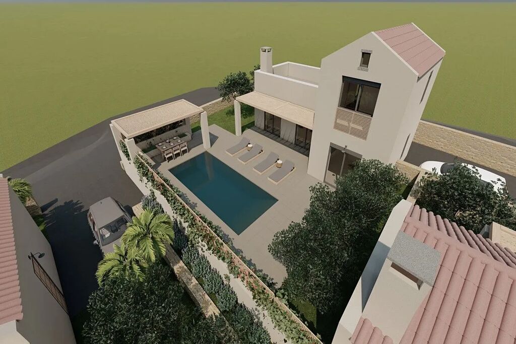 Nabízíme k prodeji novostavbu mezonetového domu v Apokoronas, Chania na Krétě, který se nachází ve vesnici Vamos. Má celkovou obytnou plochu 97 m² a nachází se na soukromém pozemku o rozloze 408 m². Je rozdělen na 2 podlaží a skládá se ze 2 ložnic a 2 koupelen. V přízemí se nachází kuchyň s otevřeným prostorem, obývací pokoj a jedna koupelna. Dále má velké balkonové dveře, které poskytují přímý přístup do prostoru zastřešeného pergolou a k bazénu.
