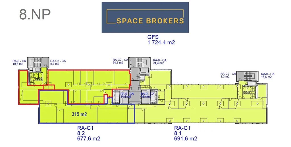 - v 6. NP kancelářská jednotka o velikosti 1370m2