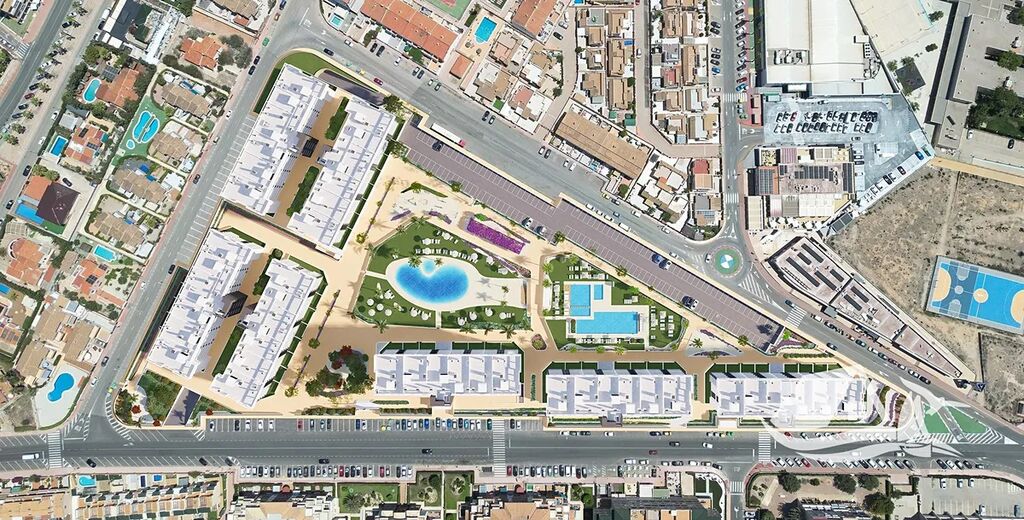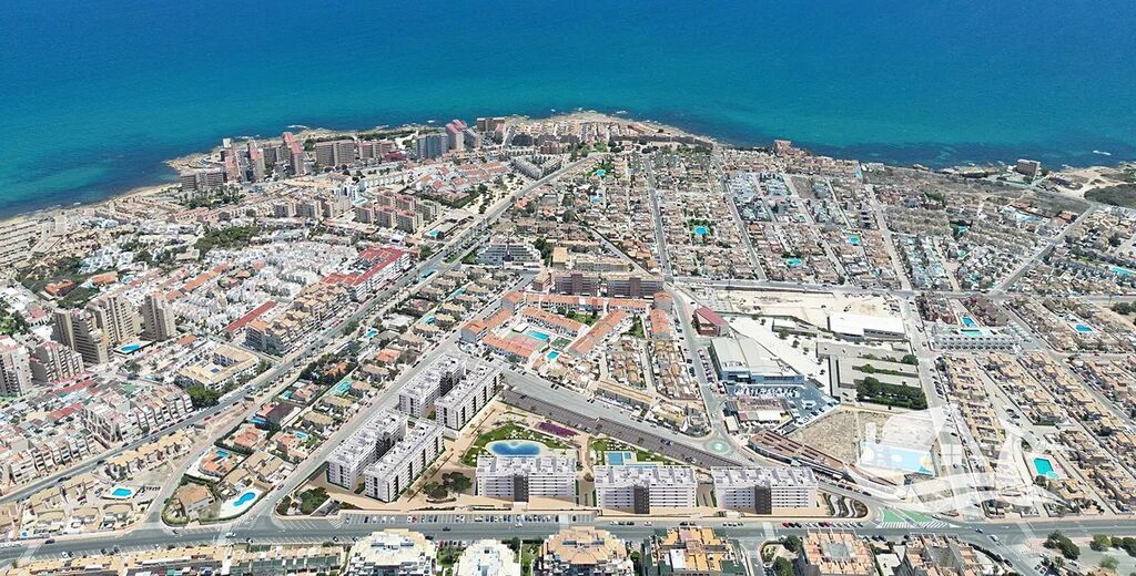 Torrevieja je město známé příjemným středomořským klimatem, dlouhými promenádami a přírodními parky s růžovými a zelenými solnými jezery. V okolí se nachází kvalitní služby, restaurace, kavárny, obchody i nákupní centrum Torremarina přímo naproti rezidenci. Pláž La Mata je v docházkové vzdálenosti a nabízí široký pás písku, příjemné koupání a krásné podvečerní světlo. Výhodou je i skvělé spojení s letišti v Alicante a Murcii.