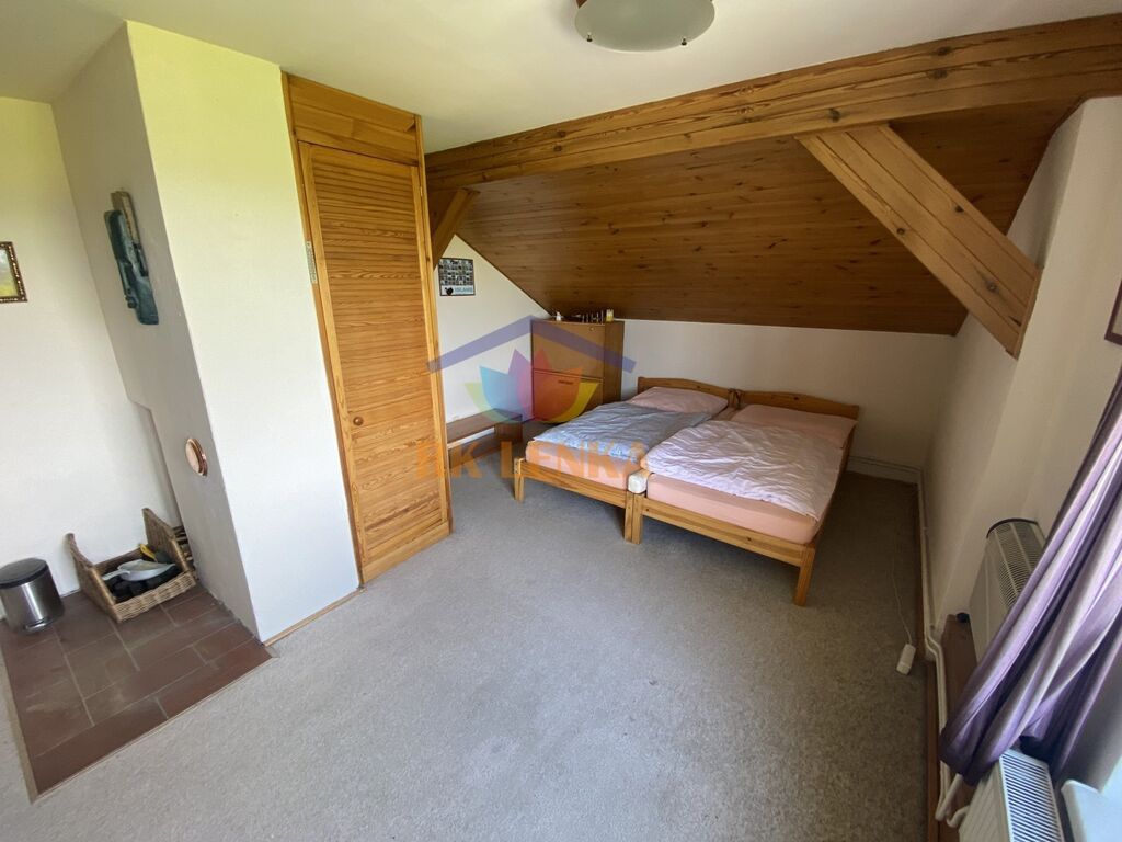 Klimatizace v obývacím pokoji a kuchyni. Krbová kamna v obývacím pokoji, možnost napojení ve vrchním pokoji další kamna.