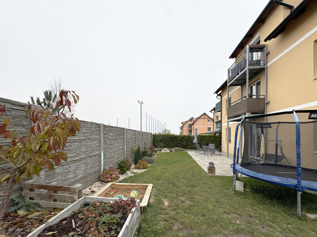 Celková plocha bytu 62 m² poskytuje dostatek prostoru pro každodenní život. Byt je situován v prvním patře třípatrového objektu, což zajišťuje snadný přístup pro rodiny s malými dětmi a kočárky. Vlastní zahrada s nadzemním bazénem a zpevněnou terasou nabízí benefity domu a vybízí k trávení volného času na čerstvém vzduchu. Dětem nabízí vyžití, zatímco vy se můžete věnovat přípravě oběda či třeba zahradničení. Místo je umístěno v klidné části obce, v těsné blízkosti sportovišť, cyklostezky a dětského hřiště.