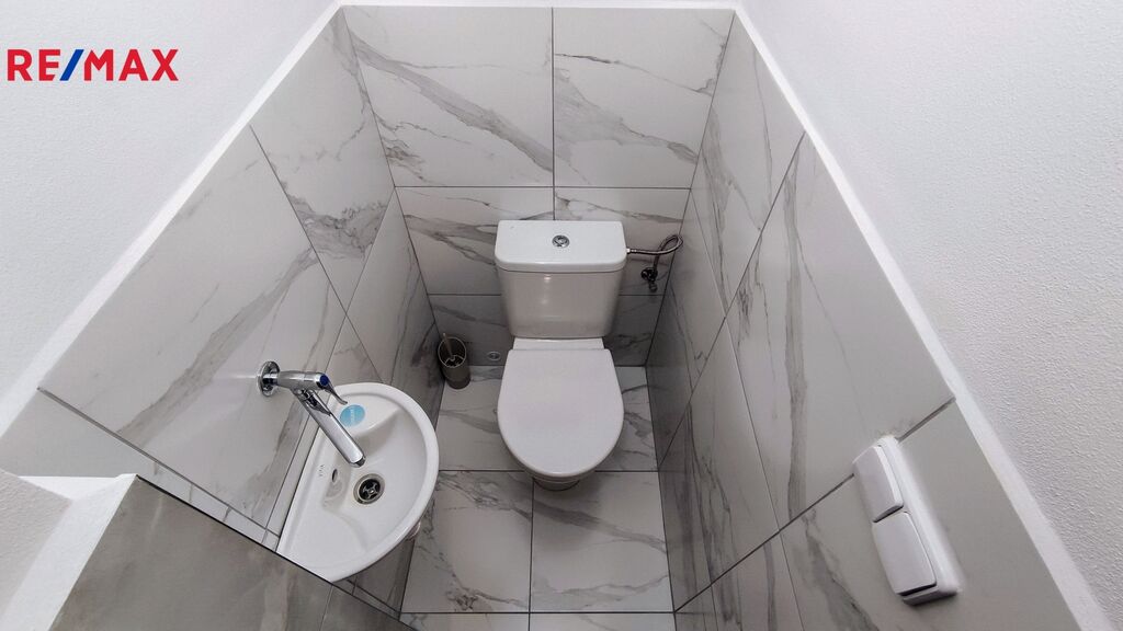 V bytě najdete oddělené WC, kuchyňskou linku vybavenou elektrickou troubou se sklokeramickou varnou deskou, digestoří, dřezem, prostorem pro lednici nebo možností připojení menší myčky nádobí. Na kuchyni navazuje prostorná obytná místnost s posuvnými dveřmi a možností připojení na vysokorychlostní internet. Koupelna je vybavena vestavným sprchovým koutem, umyvadlem se zrcadlem a žebříkovým radiátorem. Prostor pro pračku a sušičku je vymezen v oddělené technické místnosti. Vytápění je řešeno plynovým kotlem přímo v budově, který v kombinaci s bojlerem na ohřev vody zajišťuje nízké provozní náklady.