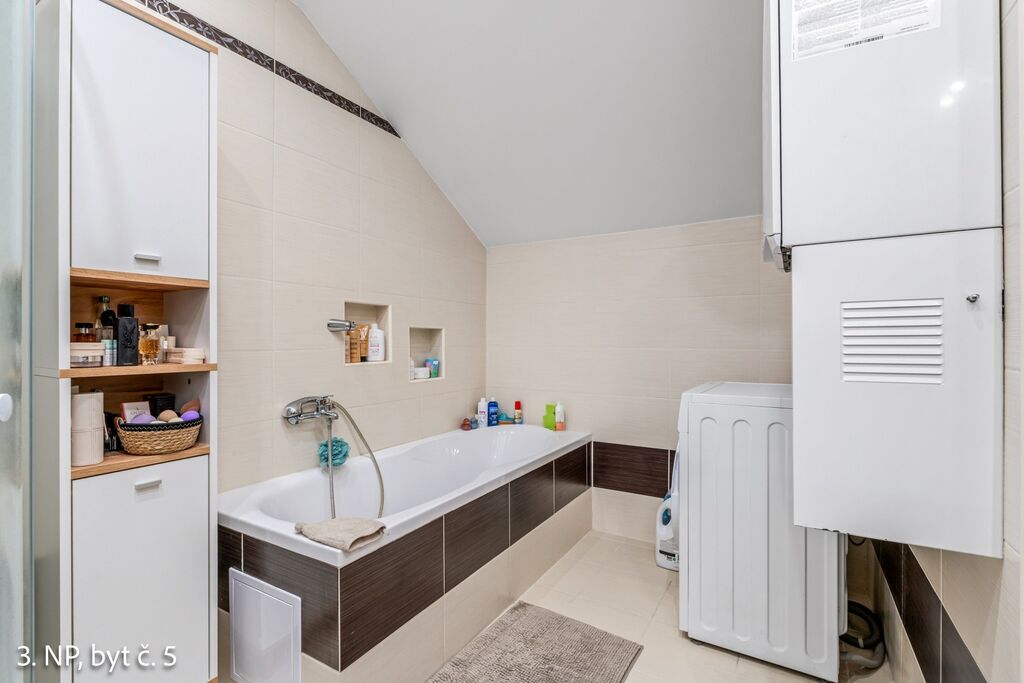 Ve 2. patře je byt zcela dokončený, vybavený a aktuálně pronajatý – ideální pro okamžitý výnos z nájmu.