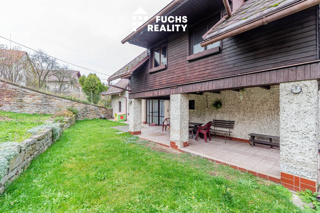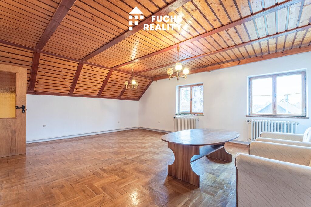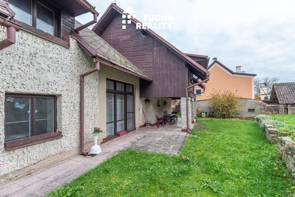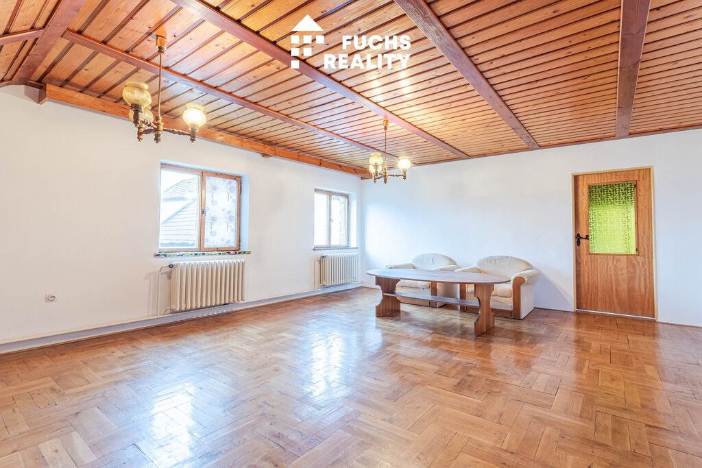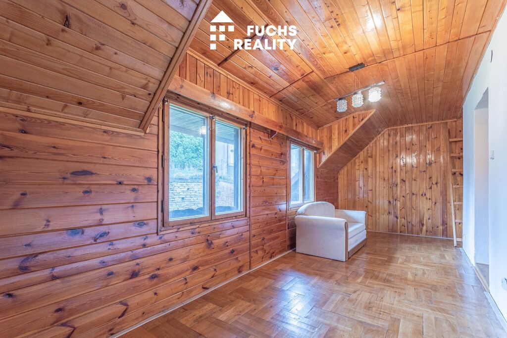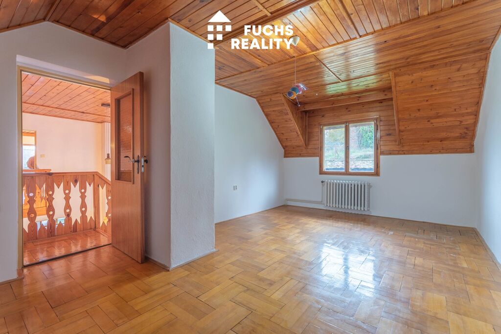 V podkroví se nacházejí čtyři samostatné pokoje, ideální pro rodinné bydlení nebo pohodlné ubytování více osob. Za domem vás potěší kryté venkovní posezení – ideální pro letní grilování nebo klidné večery s výhledem do zeleně. Součástí zahrady je i menší sklípek a prostor pro pěstování, odpočinek nebo dětské hry.