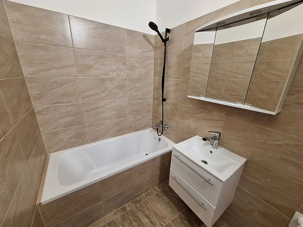 Pěkný byt po kompletní rekonstrukci. V bytě je vstupní chodba, koupelna s vanou, samostatné WC, obývací pokoj s kuchyňským koutem, vestavná linka se spotřebiči.