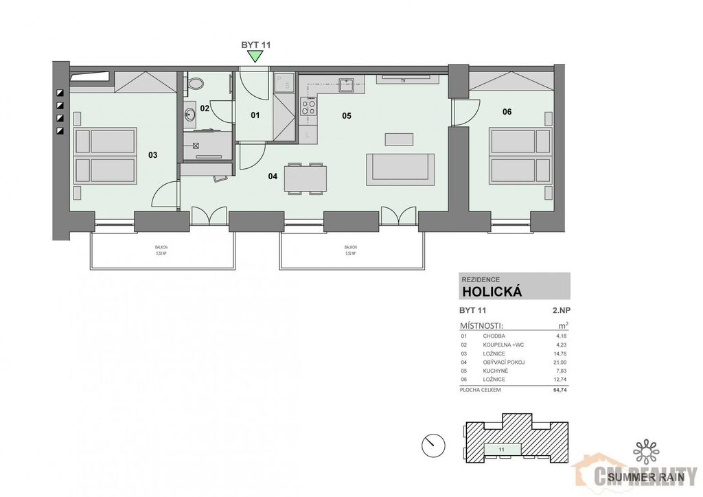 K bytu náleží také praktická sklepní kóje. Obyvatelé domu mohou využívat výtah, kolárnu a parkování na přilehlém parkovišti.