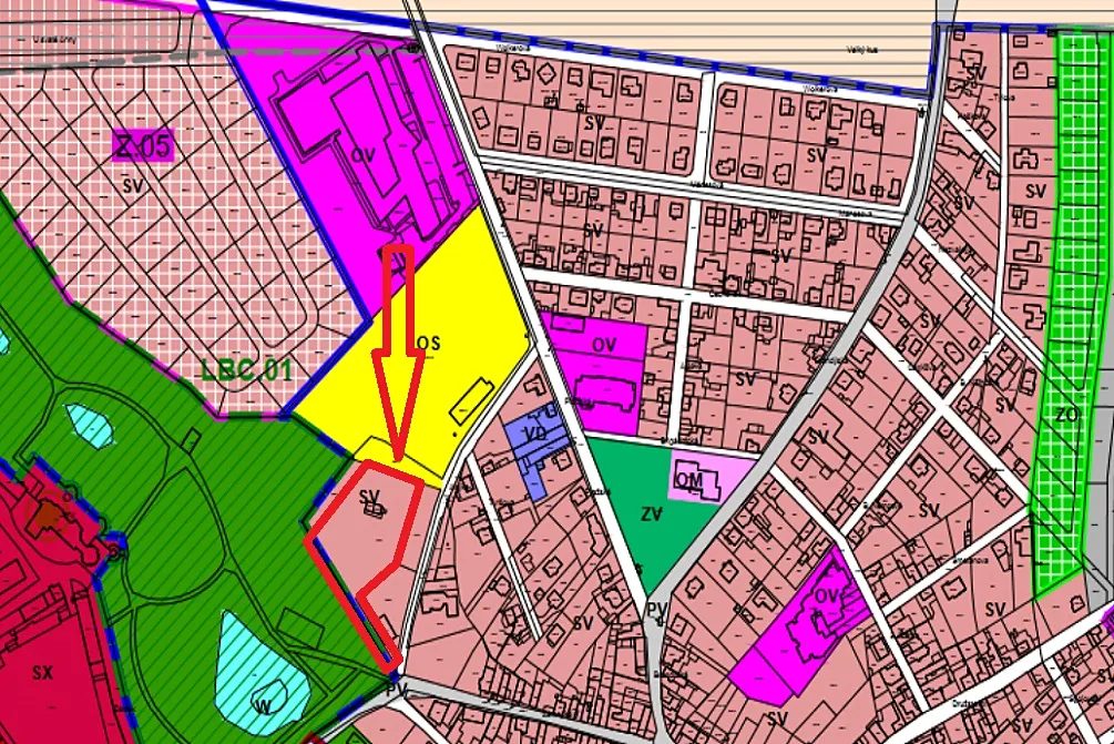 Soubor pozemků je v zastavěném území, územním plánem určený pro SV – plochy smíšené obytné –venkovské.