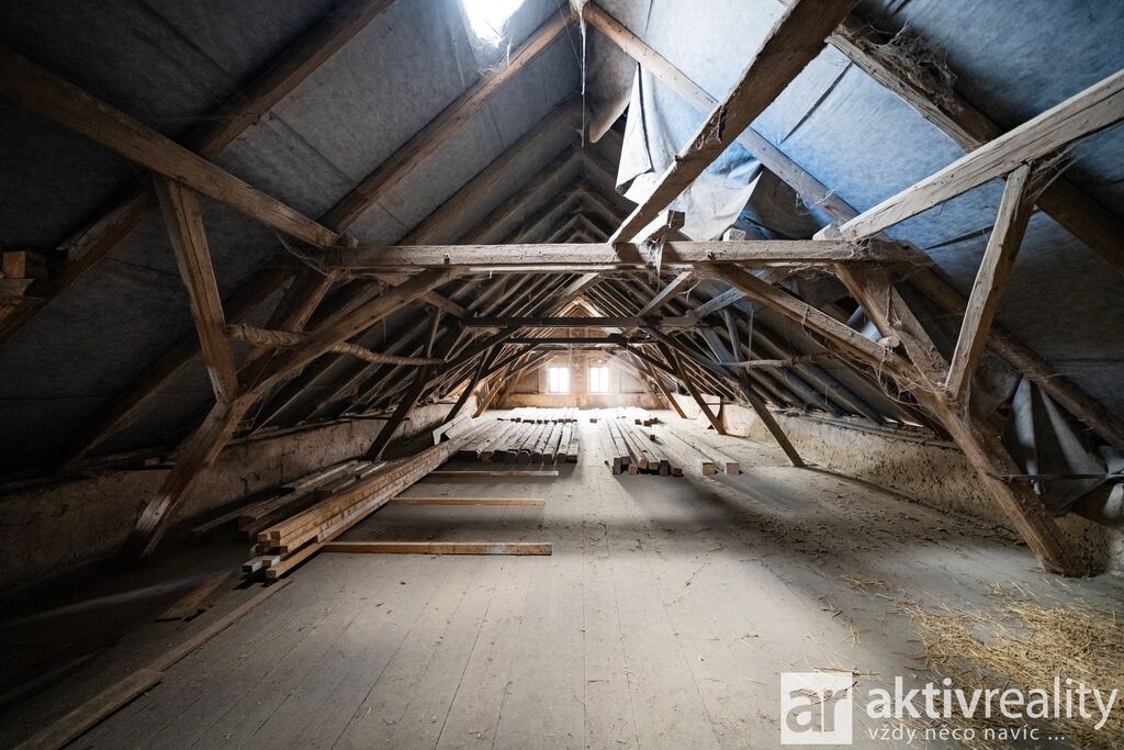 Naproti obytné části se nacházejí dvě hospodářské budovy – menší a větší chlévy, které jsou v dobrém technickém stavu. Větší chlév má přibližně 320 m², menší okolo 35 m². Obě stavby mají pevné zdivo, jsou suché a stabilní, a nad nimi se rozkládá rozsáhlý půdní prostor vhodný pro skladování nebo další využití. Na stodolu dále navazuje vysoký otevřený přístřešek o ploše přibližně 122 m², který nabízí další prostor například pro techniku či materiál.