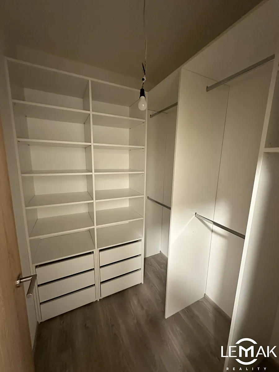 Byt se pyšní dobře promyšleným prostorem, kde hlavní obytnou část tvoří obývací pokoj s vybaveným kuchyňským koutem, včetně kuchyně na míru, digestoře, trouby a sklokeramické varné desky a klimatizace. Součástí bytu je také prostorná ložnice s elektrickými venkovními žaluziemi, které zaručují soukromí a klid. Byt doplňuje samostatná šatna se šatním systémem a moderní koupelna s WC a příjemným bonusem v podobě okna pro přirozené osvětlení a cirkulaci vzduchu.