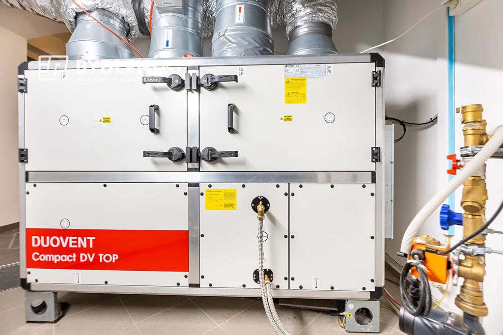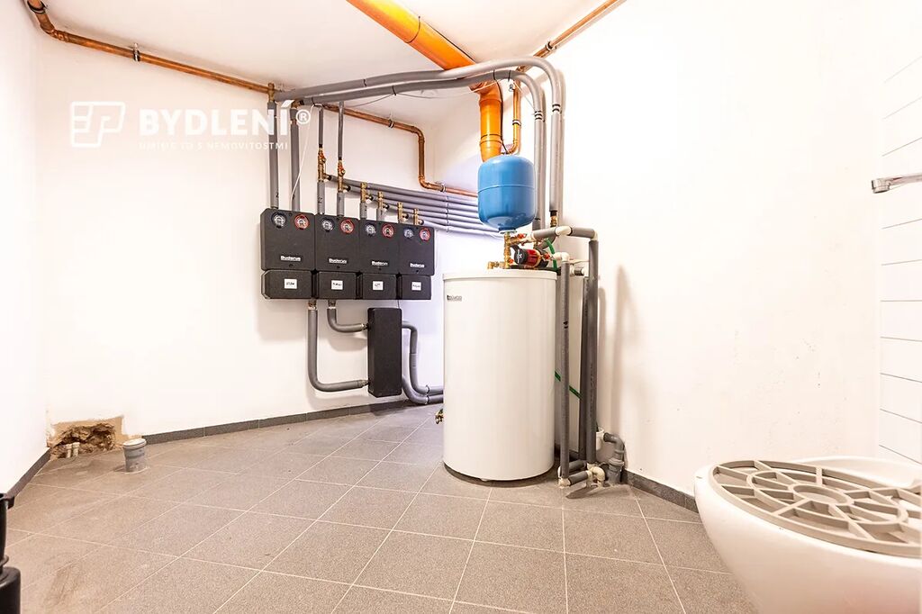 Celý prostor je vybaven rekuperací, v přízemí je plynové vytápění radiátory, v suterénu komfortní podlahové topení a nechybí ani klimatizovaný rohový prostor se skleněnou stěnou.