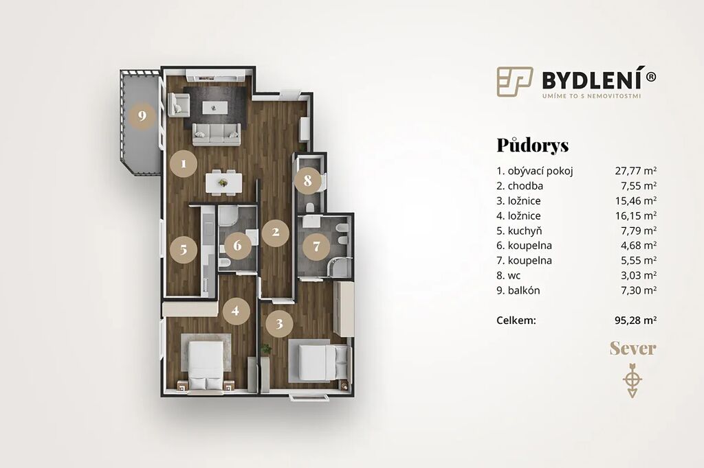 Realitní kancelář 3P Bydlení nabízí ve výhradním zastoupení k prodeji byt v osobním vlastnictví, 3+kk o rozloze 98,89 m² v Rezidenci Plaza – projektu, který kombinuje rezidenční bydlení s prvky hotelového servisu.