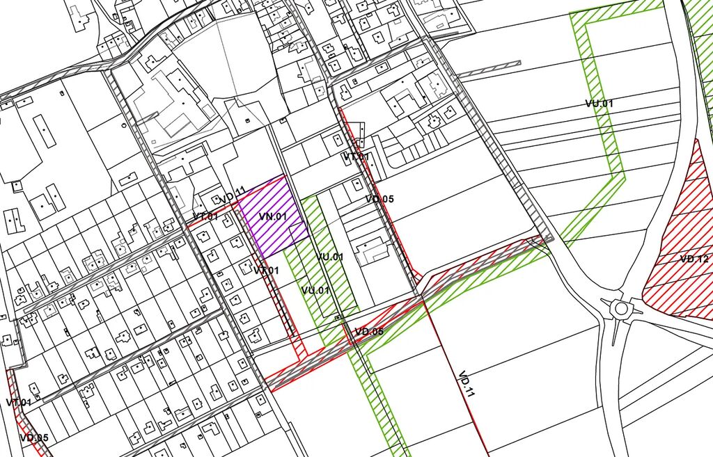 Dle územního plánu je možné na pozemku postavit jeden rodinný dům, popřípadě řadový dům o dvou číslech popisných.