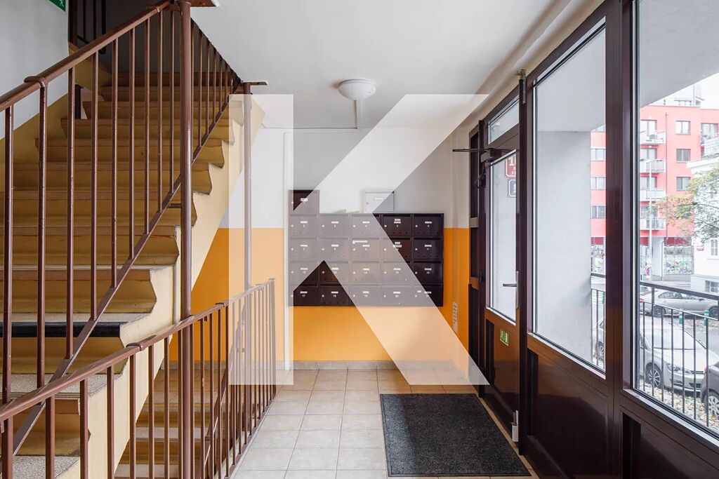 V roce 2021 prošel byt částečnou rekonstrukcí (koupelna, okna, dveře, podlahy). Dispozice nabízí obývací pokoj a kuchyň orientované do zeleně a ložnici s dalším pokojem situované do ulice. K tomu přináleží prostorná předsíň, koupelna a samostatná toaleta. Díky orientaci oken na dvě světové strany je byt celodenně prosvětlený a zároveň dobře větratelný.