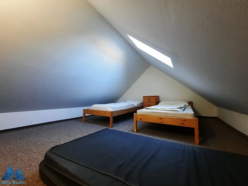 Prostorný a zařízený byt se nachází v podkroví rodinného domu na klidném místě, s krásným výhledem a dobrou dostupností do centra obce.