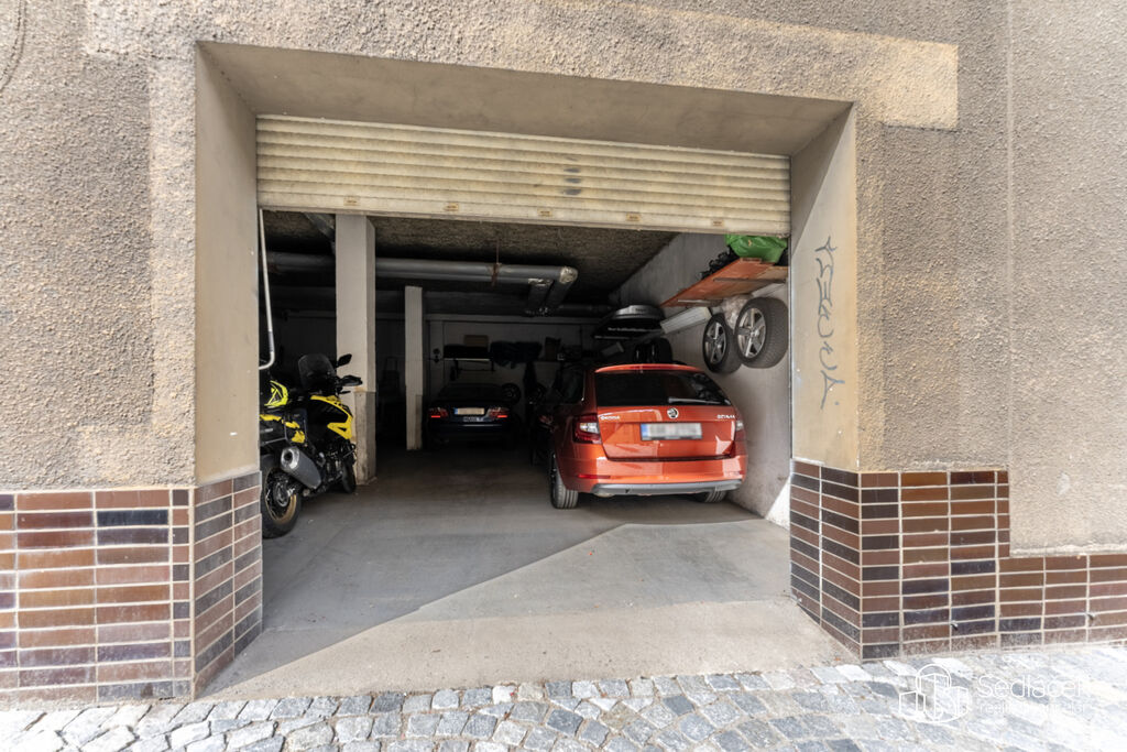 Výhodou je garáž umístěná přímo v domě. Poskytuje pohodlné a bezpečné parkování, elektřinu i vodu a eliminuje každodenní problém s parkováním v této oblíbené lokalitě. Takové zázemí je na Smíchově spíše výjimkou.
