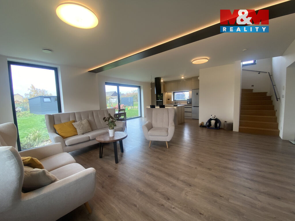 Dům má 2 nadzemní podlaží. V přízemí se nachází vstupní chodba, obývací pokoj spojený s moderní kuchyní, koupelna se sprchovým koutem, WC a technická místnost. První patro disponuje částečně zařízenou ložnicí, 2 dětskými pokoji, koupelnou s vanou a toaletou. V domě je podlahové vytápění, rekuperace i předokenní žaluzie. Na pozemku se dá využívat zahradní domek. Energetický štítek budovy A, který zaručuje nízké provozní náklady. Dům nabízí komfortní a stylové bydlení zejména pro rodinu. Kolaudace proběhla v roce 2024. Kousek od domu se nachází velké hřiště. Obec disponuje veškerou občanskou vybaveností.