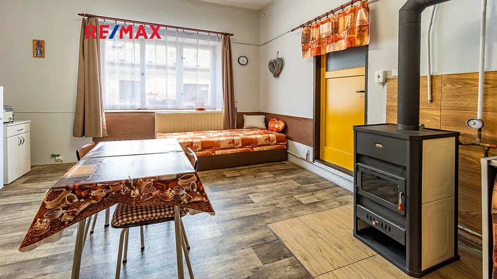 Vytápění zajišťují nová krbová kamna s výměníkem (instalace v roce 2025), ohřev vody je řešen bojlerem. V domě je zavedená elektřina a k dispozici je i plynová přípojka ve spodním patře. Součástí domu je půda (220m2), kterou lze využívat společně s ostatními vlastníky.