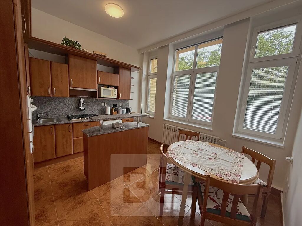 Nabízíme k pronájmu prakticky řešený, vybavený byt 3+1 o velikosti 106m², situovaný v pečlivě udržovaném bytovém domě s výtahem. K bytu náleží prostorná sklepní kóje. Možnost parkování ve vnitrobloku.